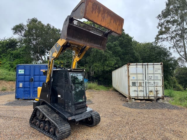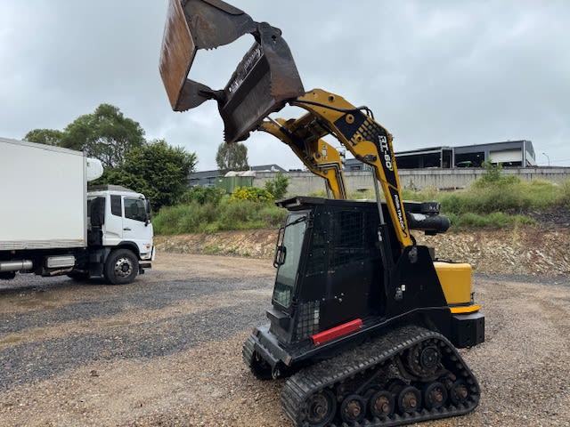 Modèle 2017, 5216 heures, 60 CV, turbocompressé, machine de 2960 kg, capacité de levage de 862 kg, déplacement à deux vitesses, commande par joystick, godet 4-en-1 de 1720 mm de large, cabine climatisée, stéréo AM/FM, radio UHF.
